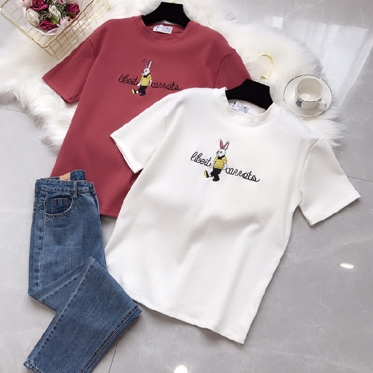 简单的圆领设计,露出性感的锁骨线条,时尚性感。简约的短袖不做作不闷热,自然贴合手臂。胸前可爱印花的点缀,在版型和色调上都是极其百搭。个性而不张扬,同时起到减龄的作用, 垂感的冰丝针织面料,很柔软,上身清凉舒适。