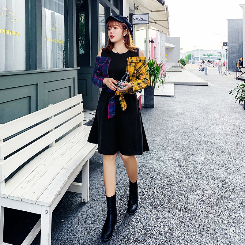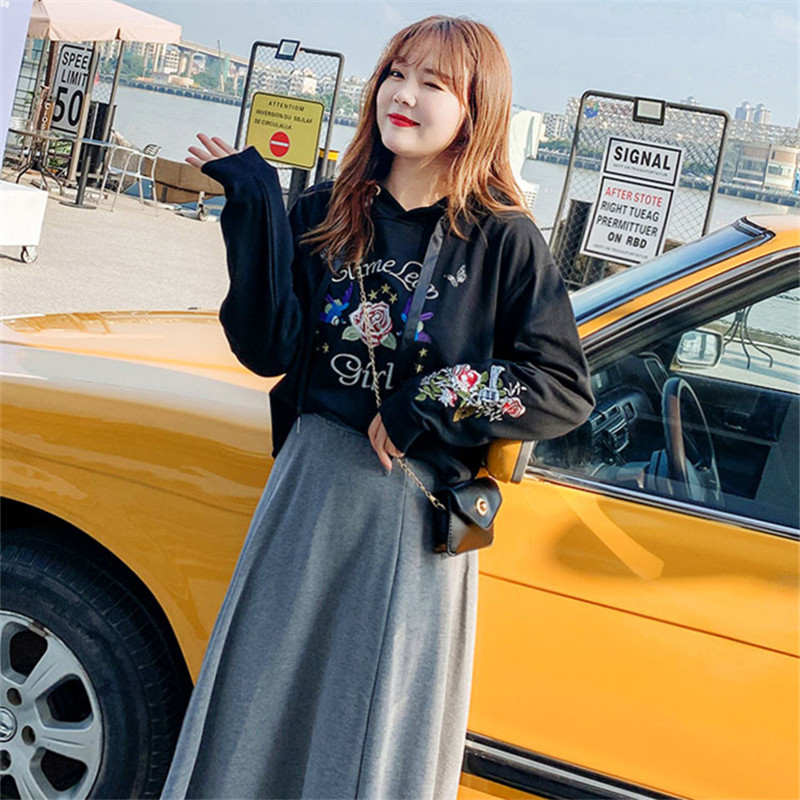 A字裙摆的设计有非常出众的显瘦效果,充分美化你的身材比例。而用黑色卫衣与浅灰A字裙混搭,拉长腿部线条的同时,也能够让你增添几分优雅女人味。