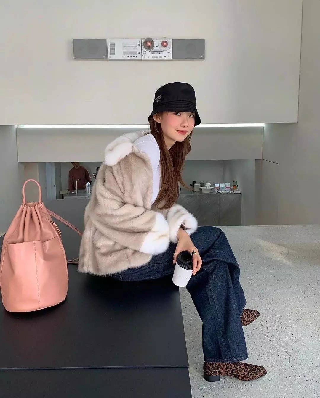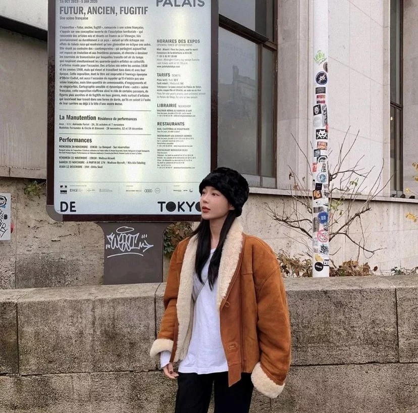 这两年麂皮绒的热度可一点也不见少,平时穿很喜欢加些配饰的话,展现十足的个人风格。如果说鸭舌帽是运用休闲风的象征,那么毛绒帽提升气质可以说是一绝,结合外套的大翻领设计,美到犯规!