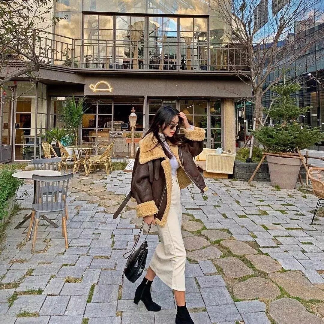 很多女生跳进羊羔毛外套的坑后就再也出不来了,不管长的、短的、颜色深的还是浅色,我算是买了个遍,毕竟集保暖、美貌于一身的它,哪个女生能抗拒呢? 今年短款的式样红透了半边天,害怕撑不起长外套?选它错不了,再加个腰带,小个子星人穿着也妥妥的。