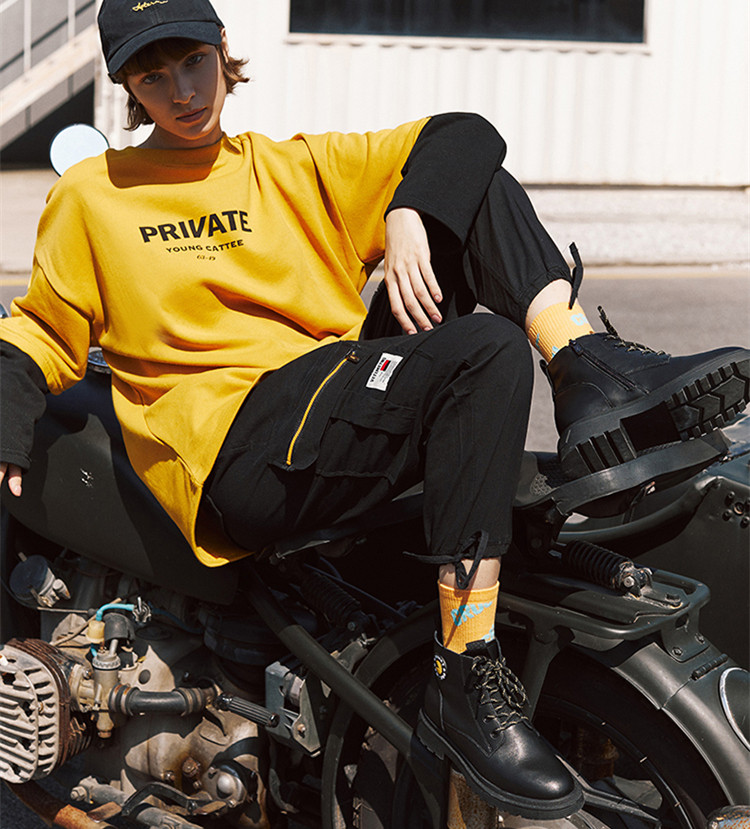 宽松的工装裤可以轻松掩盖住各种小粗腿,和马丁靴组合在一起,立马就能去“炸街”啦!