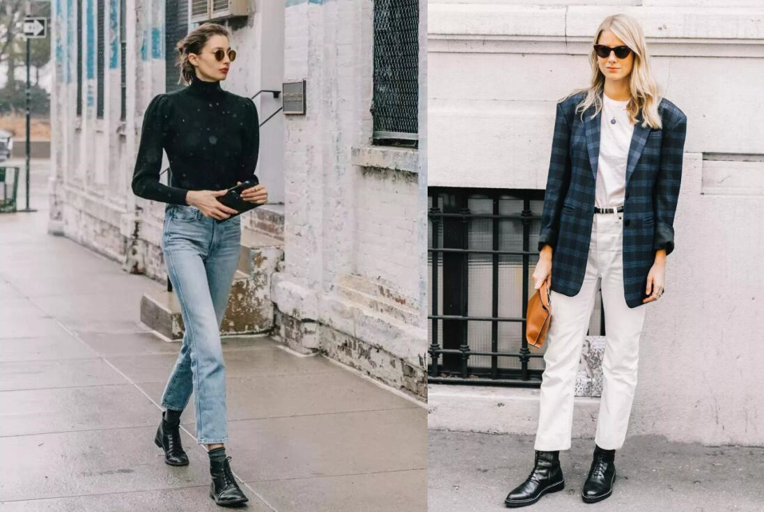 3、修饰腿型:马丁靴+直筒裤