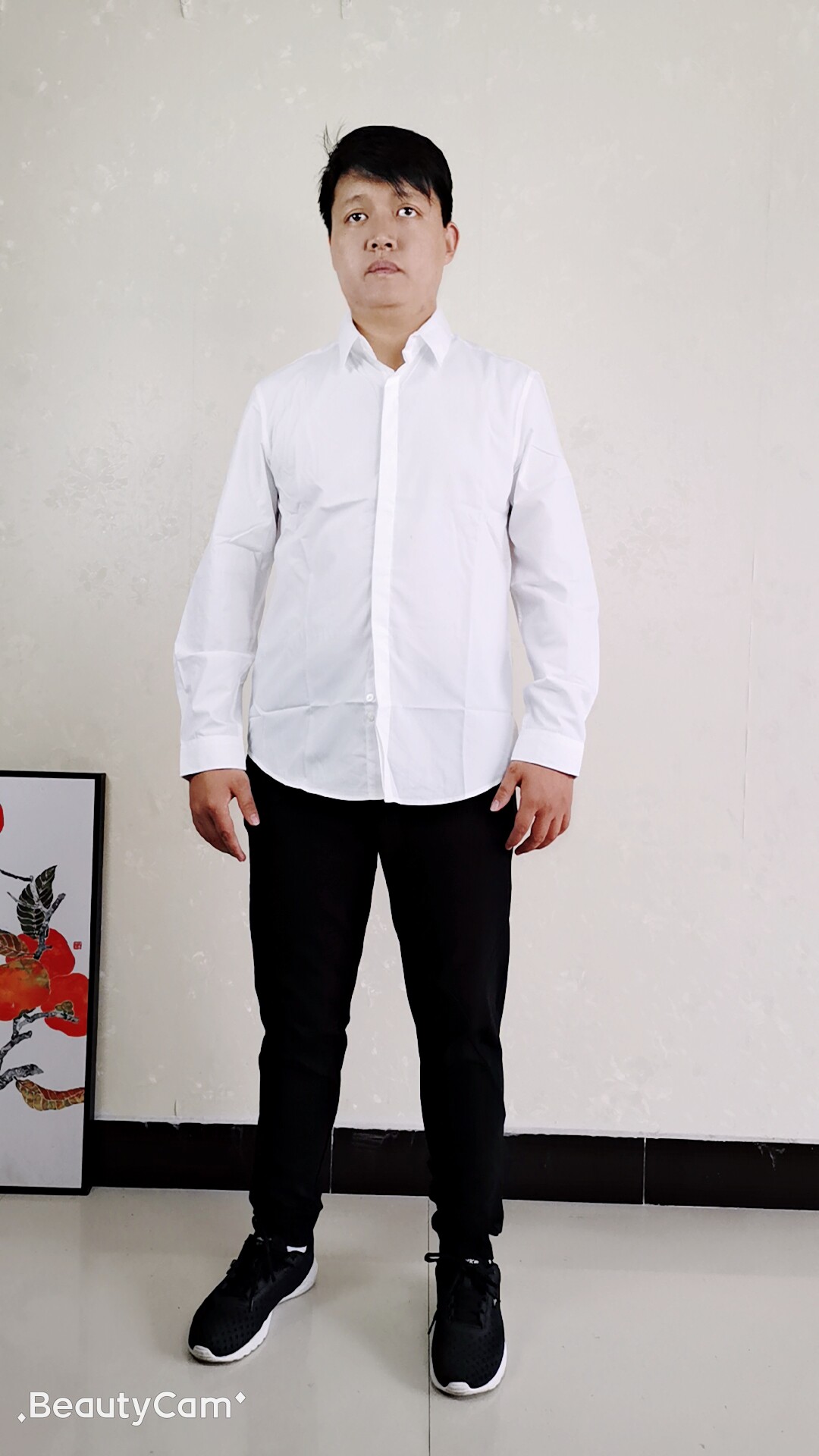 白色的长袖T恤,在胸口印案上一系列的风景照图,让整件T恤显得倍加好看,下半身搭配一条浅色牛仔九分背带裤,脚下的深褐色潮鞋,也是好看,整体让众人可知,男人也同样可以以可爱示人。