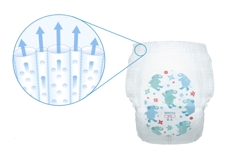 就像妮飘家的这款进口超薄纸尿裤就非常适合宝宝学步穿,它采用了绗缝技术,可以将纸尿裤的整体吸水性和透气性提高2-3倍,再配合它腰部的开孔透气构造,使腰围上的褶皱,形成一个个管形通道,让湿气能够向上排出,进一步加强纸尿裤的透气性,即使有时忘了给宝宝换纸尿裤,也能保证宝宝屁屁干爽舒适。
