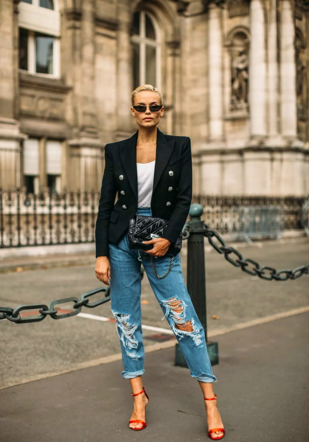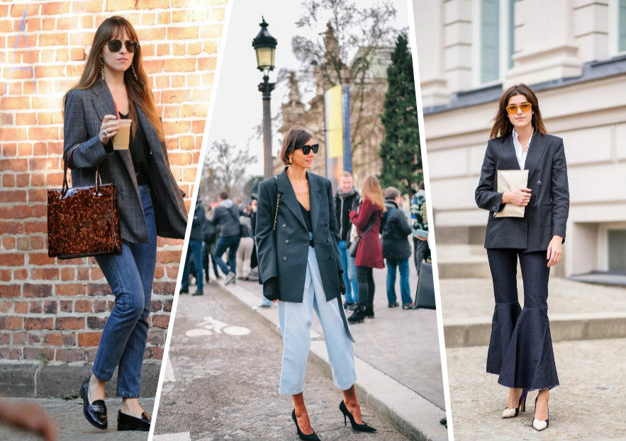 合身西装虽然看上去设计感没有前两种足,但是拿来配紧腿牛仔裤的效果却是超棒的。整体线条保持一致,不用担心平衡整体的问题,搭配也更随意一些。