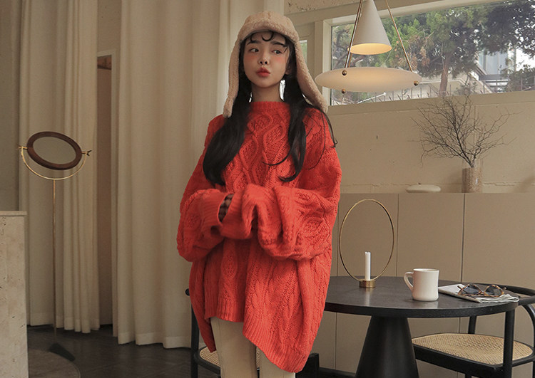 大红色的中长款针织衫,看上去就有一中欧冠活力四射的感觉。松松垮垮的样式,长度刚好盖过臀部的位置,很适合塑造“下衣失踪”的穿搭。