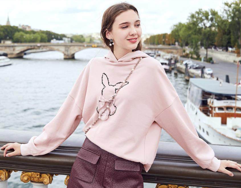 是套头的连帽款,纯净的颜色,女孩穿在身上有种娴静的感觉,前胸的大写字母又赋予了衣服一种时尚感,是一款适合文静女孩穿的运动衣。