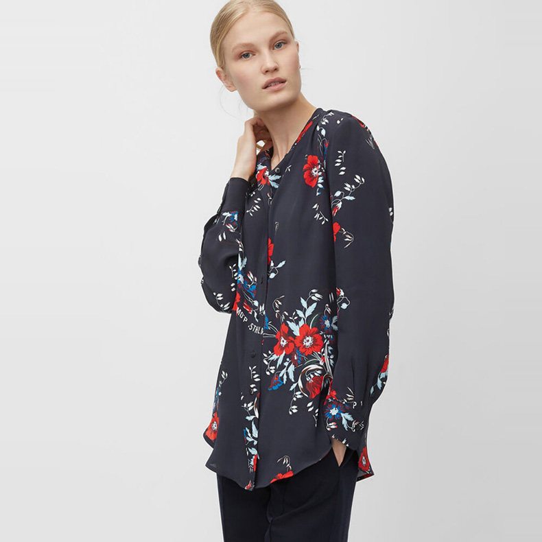 这件时尚的印花衬衫,采用优质的面料制作,穿着舒适亲肤更加显品质感,经典的圆领设计,穿着凸显颈部线条曲线,时尚的印花,打造个性洋气魅力。
