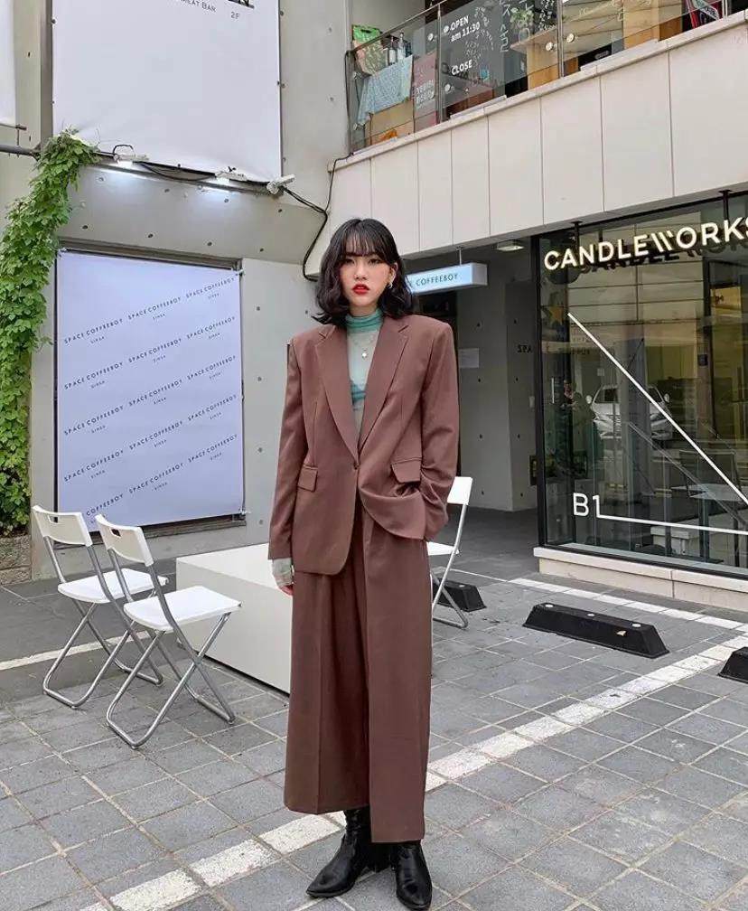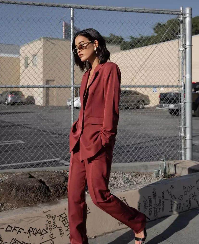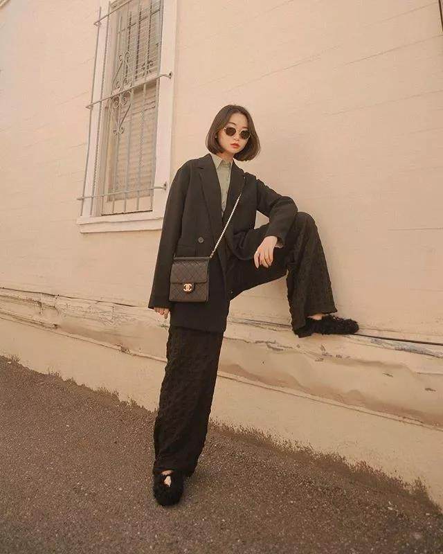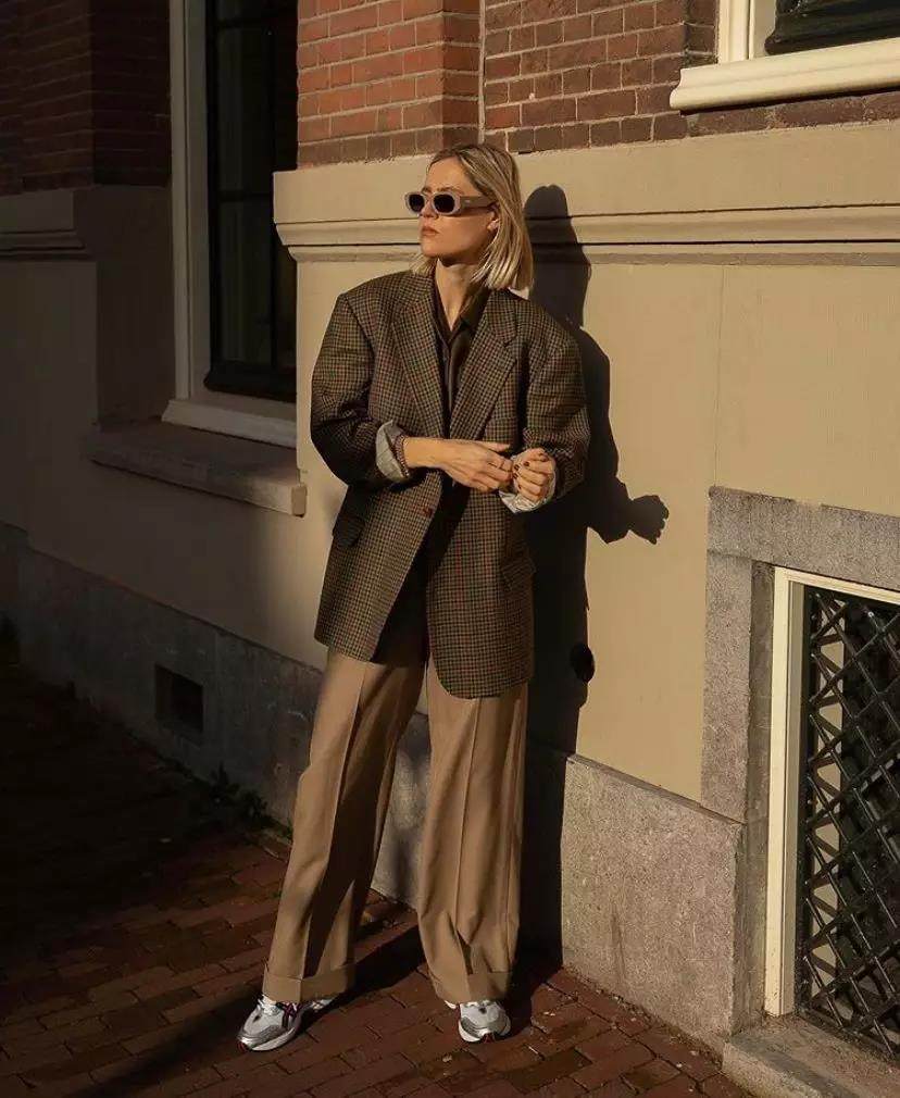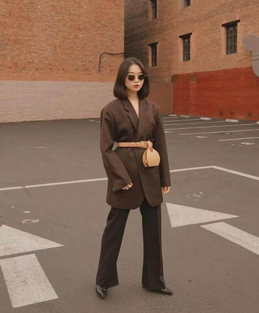 相对于传统的黑色西装,如今改良版的早就摆脱了呆板的形象,复古的款式备受追捧,觉得过于宽松的,轻轻一根腰带加持,时髦度up,随性又帅气。