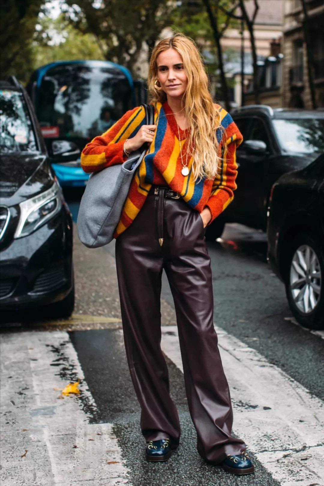 说到皮裤,也是被大伙诟病的一款单品,大家的第一反应可能就是普通人的重灾区?!显土又显胖?但事实上呢,“回潮”的皮裤好看又不挑人~皮裤一定要选择直筒或者宽松的裤型,才能穿出时髦感,要是高腰会更显身材哦!