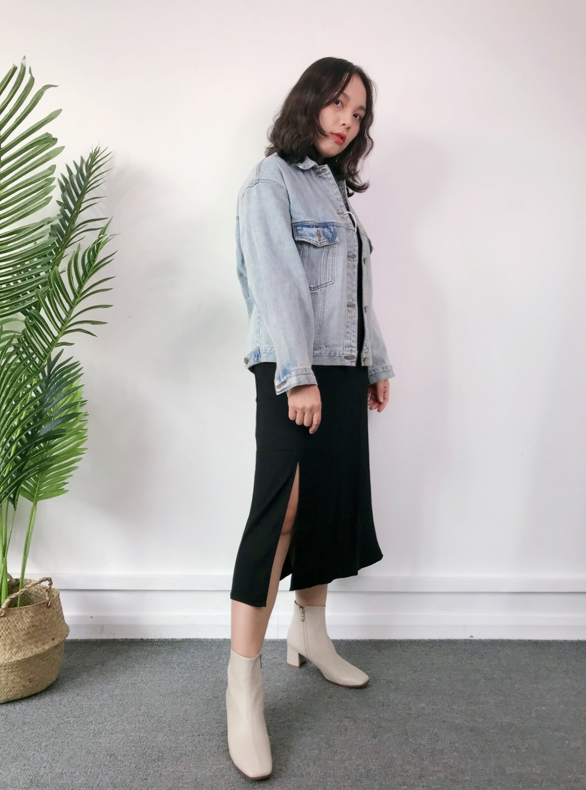这样的穿搭选择,裙摆处开叉设计能弱化上半部分的视觉效果,对于不是很瘦的女生来说也更包容了。即能满足你藏肉修身的欲望,又能帮你拉高身高,瞬间长高10CM,要是搭配一双高跟鞋,这气场可“不容小觑”哦!