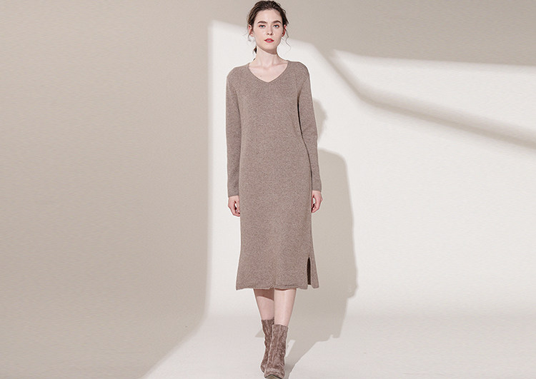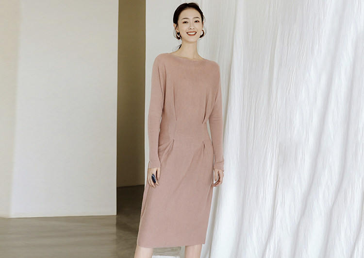 很低调的一款针织连衣裙,而且杏色的色调也太温柔了吧,再加上高领的设计以及山羊绒的面料,即使是冬天或者春天都可以穿,实穿指数五颗星。