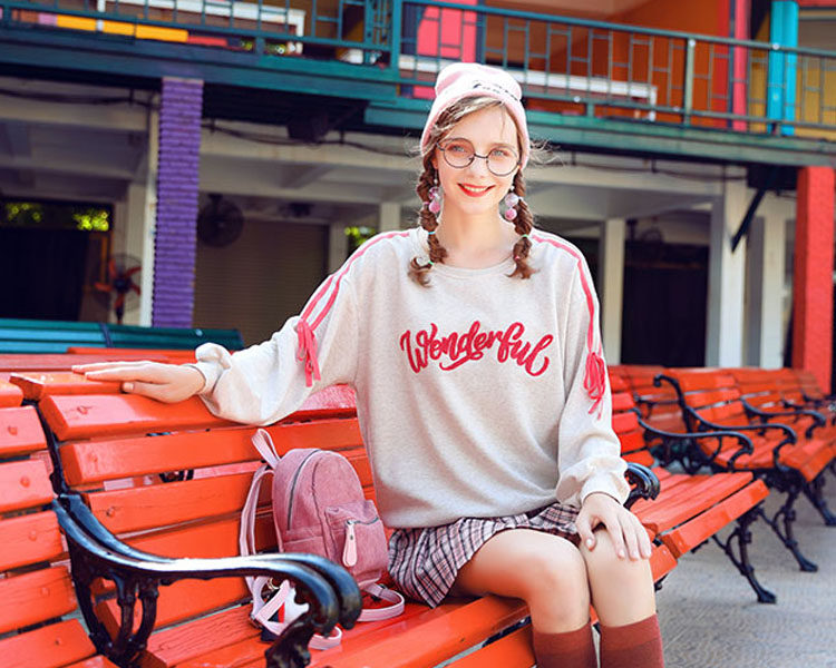 第一款是甜美的卫衣穿搭。时尚的米灰色卫衣,宽松有范儿,适合各种身材的妹纸。搭配粉色格纹百褶裙+粉色针织帽,很有青春大学生的气息,个性又减龄~当然,也可以搭配蓝色牛仔裤,休闲又舒适!