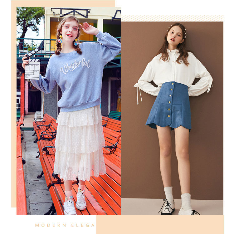 洋溢甜美的少女半身裙,为秋冬加点糖分~可以说是秋日显高显腿长的秘密武器啦。只需一件杏色花领上衣,便可完成整个穿搭。天气冷的时候,可以搭一件日系哑光绵羊绒打底裤,保暖又防寒,超显瘦哒!