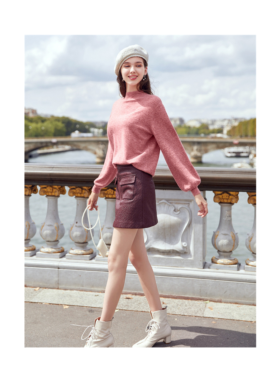 还是保暖的高领款,很贴心 , 彰显着品质,让你脱下外套,作为内搭打底的针织衫来说,一点也不掉价,满满的简约大牌感。