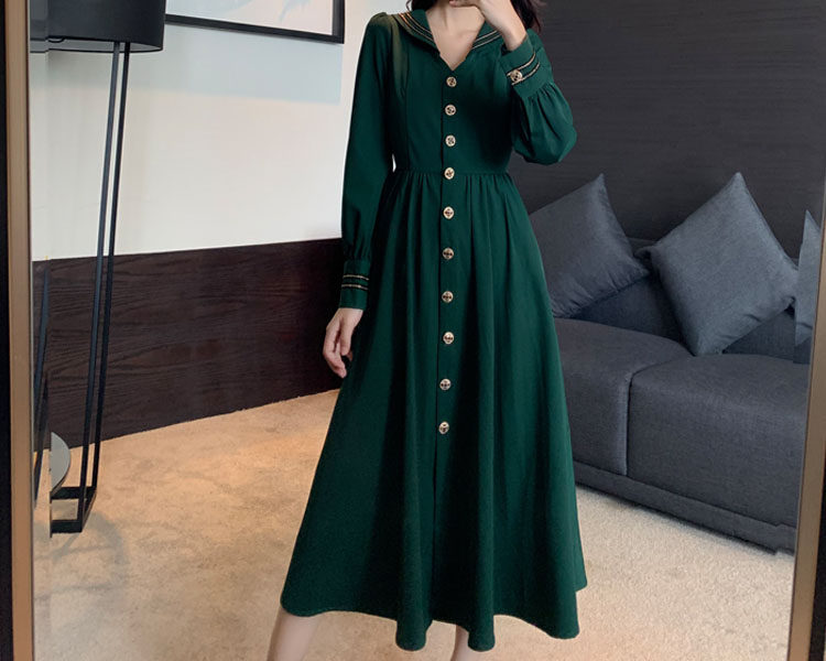 墨绿的颜色加上一些金色线条的点缀,很有低调奢华感。搭配一双米白方头粗跟鞋,显高显气质。配上一顶棕色皮质八角帽,时髦又有质感,更具浓郁复古气息!再搭配上一些吸晴的配饰,能为整体的搭配效果加分不少。