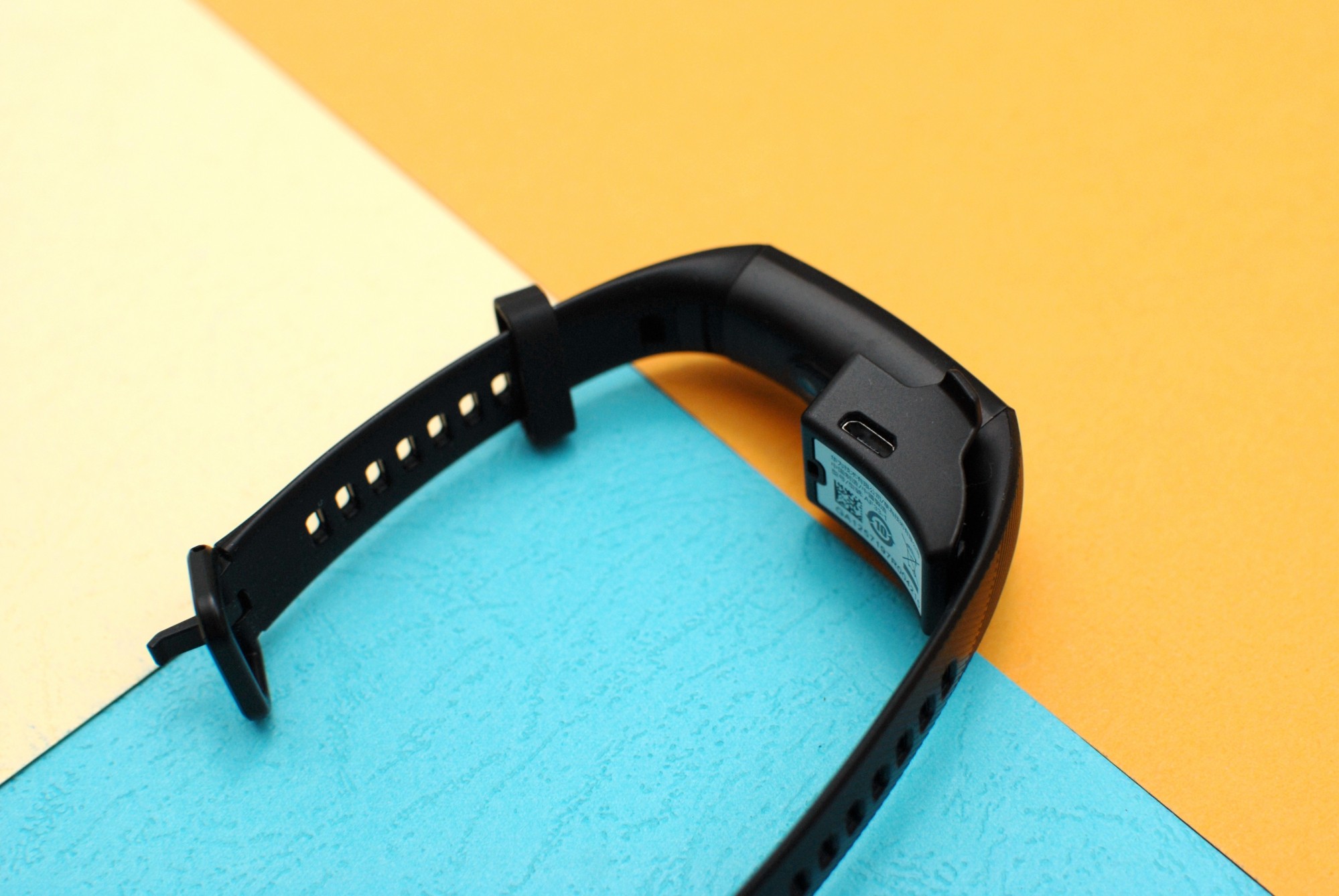 荣耀手环5配备的充电底座,直接卡扣至手环即可充电,无需拆卸腕带的设计还是挺方便的,而且充电线与充电底座为分离式结构,用户还可以自行更换更长的线材。