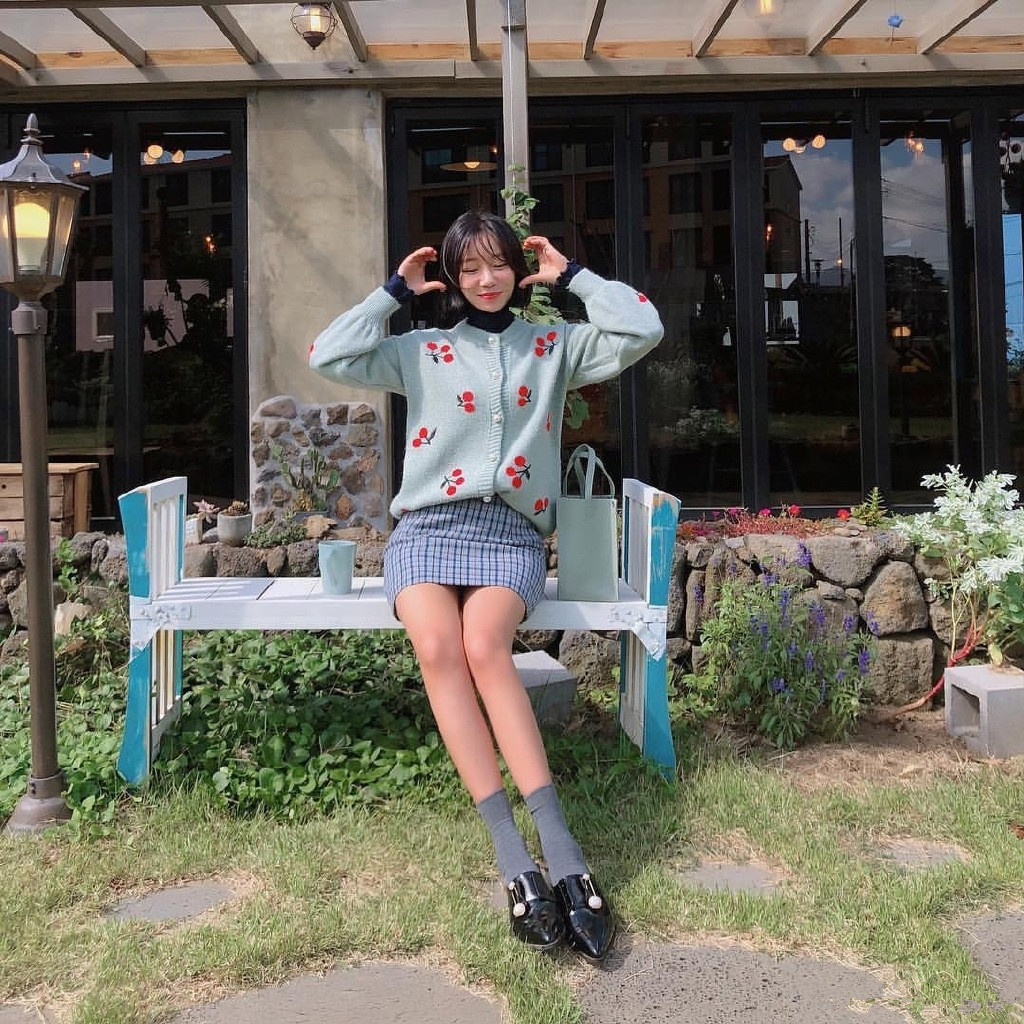 上身用一件短款的毛衣,或是针织衫来保住温暖就行啦,温暖且潮的韩范穿搭,说的就是它啦~