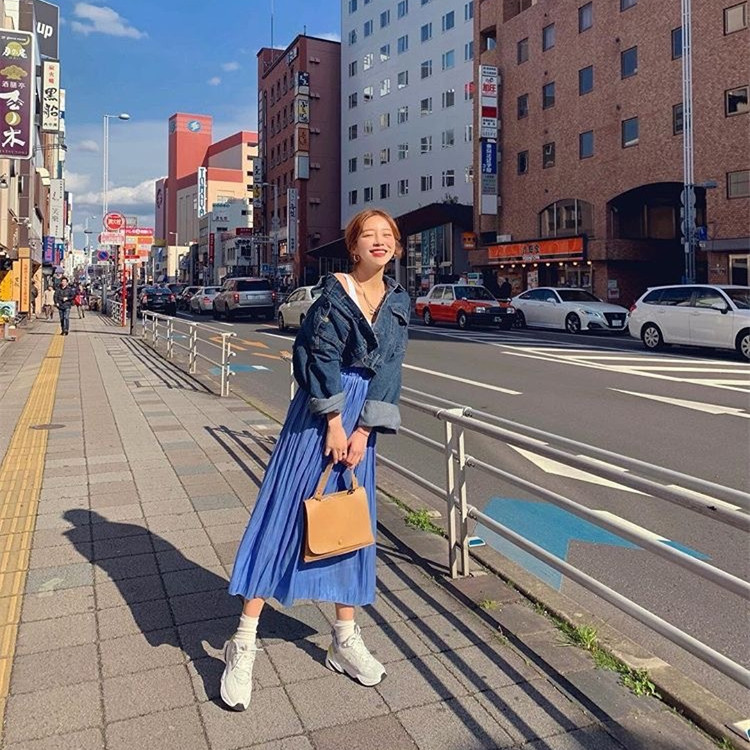 夏天虽然已经悄悄过去了,但有些长裙暂时还不要收起来,套个暖和一点的外套,加上青春感十足的运动鞋,瞬间就能打造出一个温暖又时尚的look!
