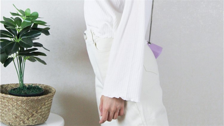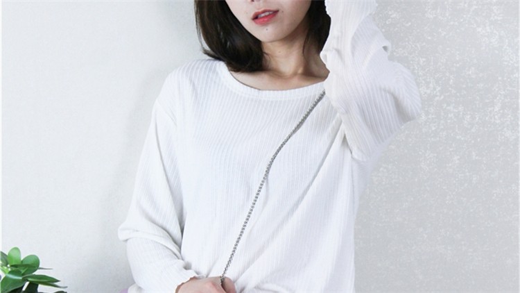 像这样的小落肩对于肩部的修饰效果是很棒的哦!侧面看起来是不是也很显瘦,上身属于百搭不挑人的款式。仔细看的话发现袖部的下摆微微的加宽,盖住了手腕,给人慵懒有型的感觉。