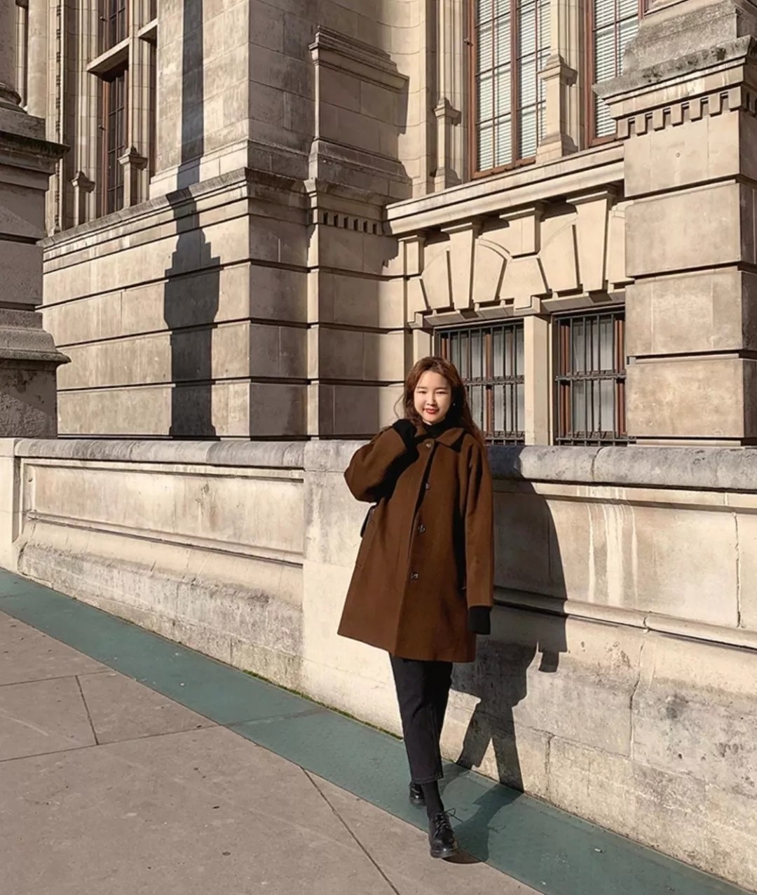 纯色的选款和搭配都很符合我们日常,像这样以黑色系内搭为基础,外面穿一件焦糖色大衣,诠释less is more的效果。