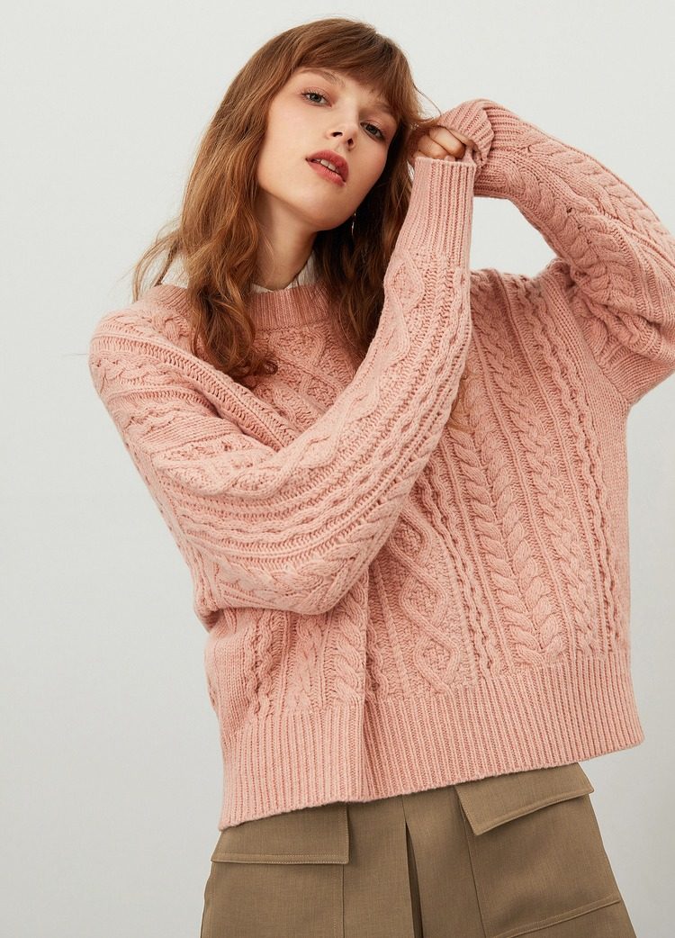 这件毛衣宽松的灯笼袖是一大亮点,可以遮住手臂上的肉肉。而且宽松的毛衣穿起来很舒服,里面可以叠加好几件修身的保暖内衣。