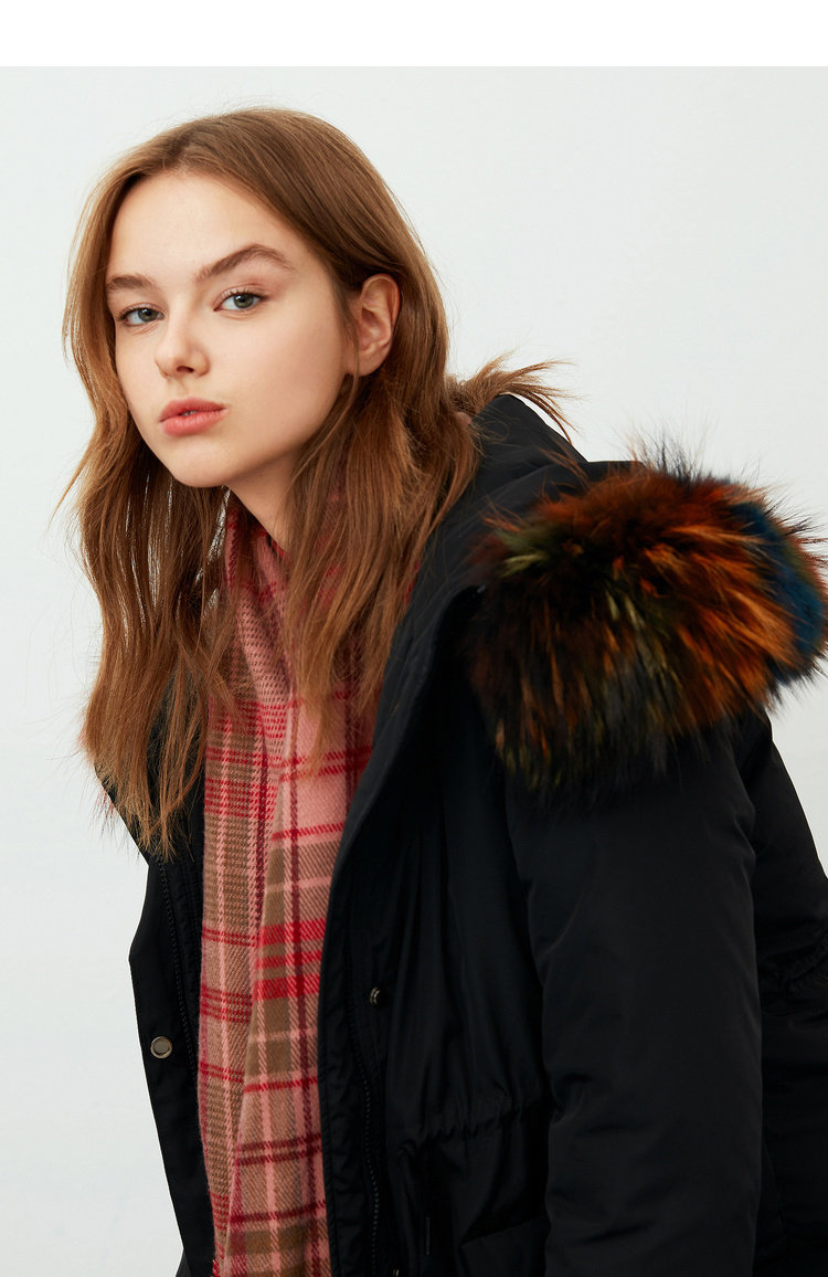 这件羽绒服真的是设计感太强了,它搭配了同色系的羽绒围巾,不仅超保暖而且真的非常时尚,走在路上回头率肯定百分百。
