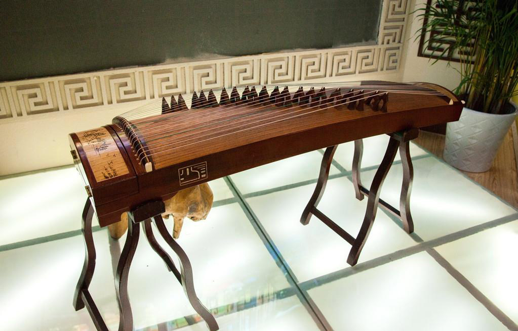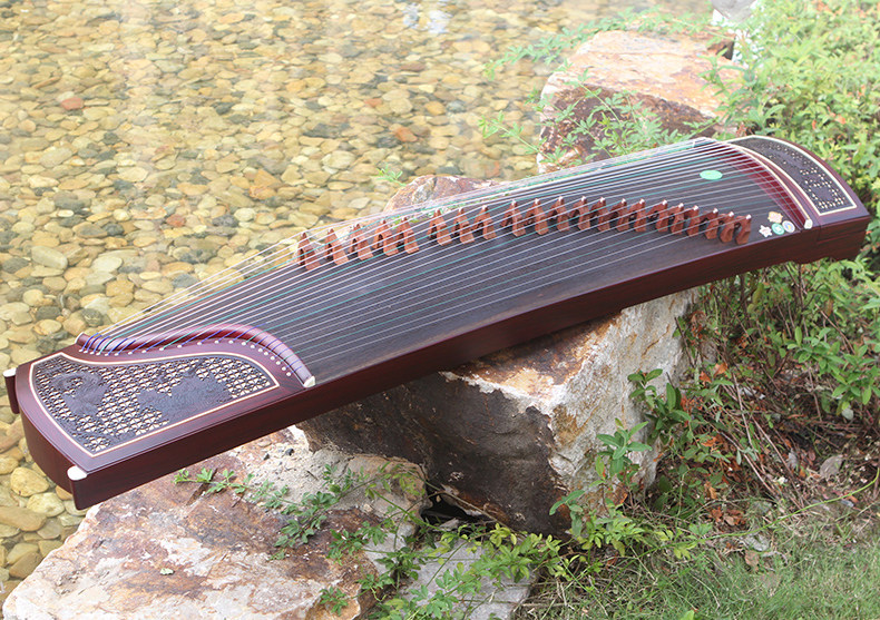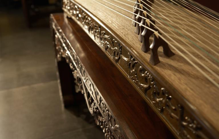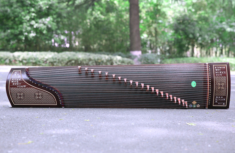 雕花设计多出现在古筝的首、尾以及背面,腹部相对较少,主要起到装饰作用。也有使用漆装描绘工艺来装点的,这种的覆盖范围便自由许多,通常没用特殊的限制。
