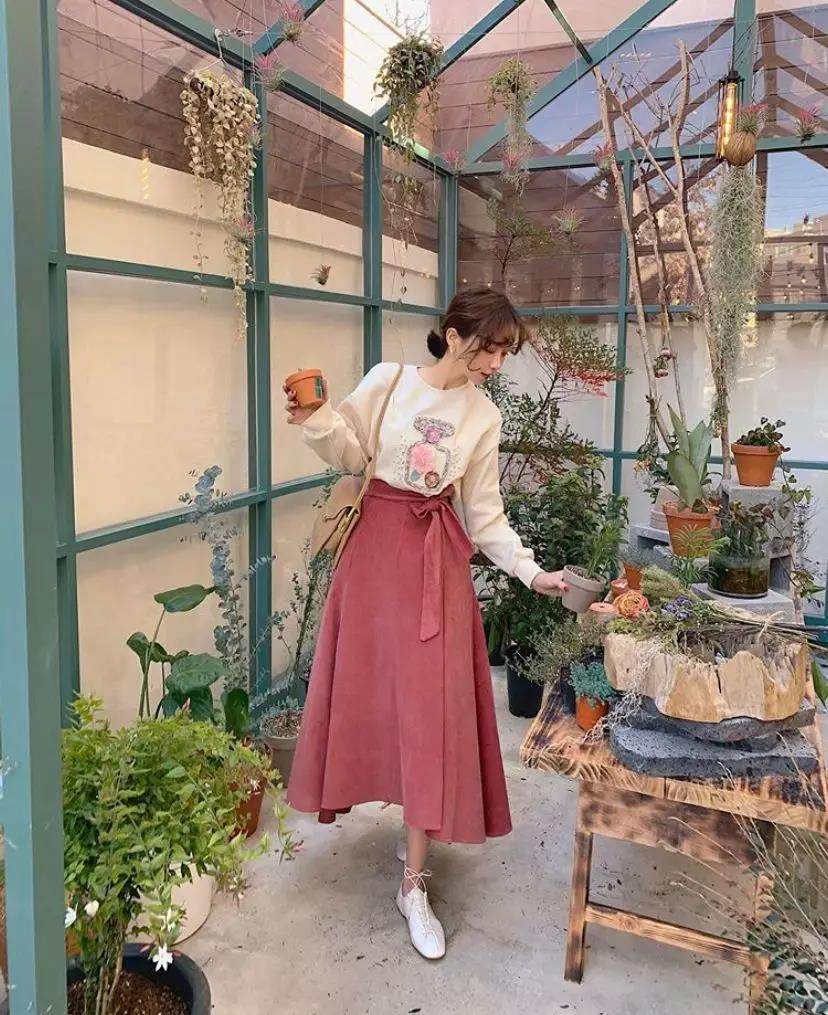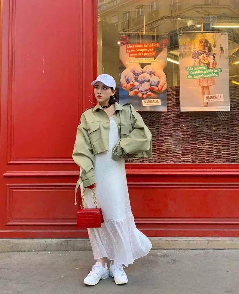 元气减龄的涂鸦款式卫衣,与温柔感满满的伞裙组合在一起,自带青春休闲的复古气息。打破了整体的单调感,整个look活泼中带着柔美。