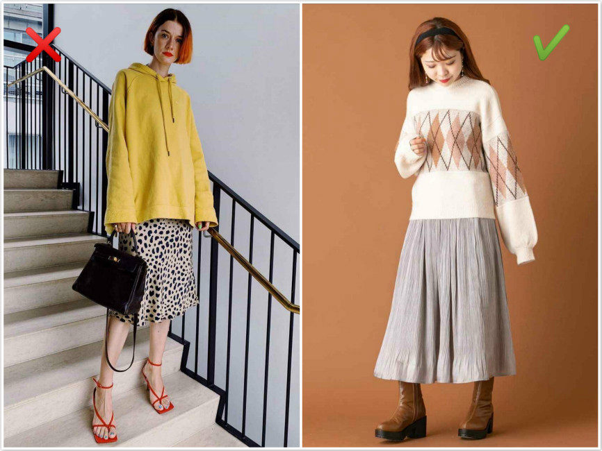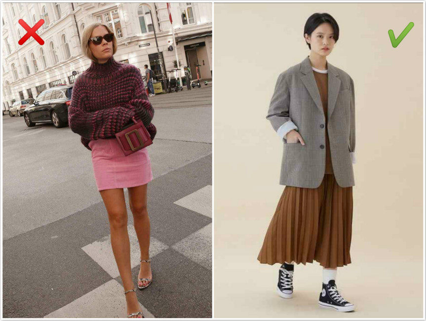 秋天针织衫怎么少得了,轻松的针织衫透气又保暖,样式更是多样个性。我们上身搭配一个轻松的拼色针织衫,圆形领口也不会漏风而冷了自己,宽松的袖口一定程度上可以遮去烦躁的拜拜肉。下身配上一个宽松版的半身裙,中长款样式完全不用怕腿不够纤细,而且中长款也拉高身形,可以纤瘦。