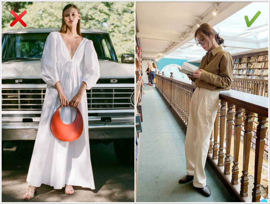 我们可以选择版型上较为严苛的单品,比如衬衫就是不错的选择。比起像T恤一类的服装,衬衫的版型更加的立体,同时面料选择上也大多选择具有一定硬度的可以,所以这样也就不会有显胖的感觉,然后可以搭配一个舒适宽松的阔腿裤,也遮去赘肉又不显小肉肉的弧度。