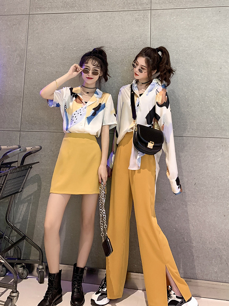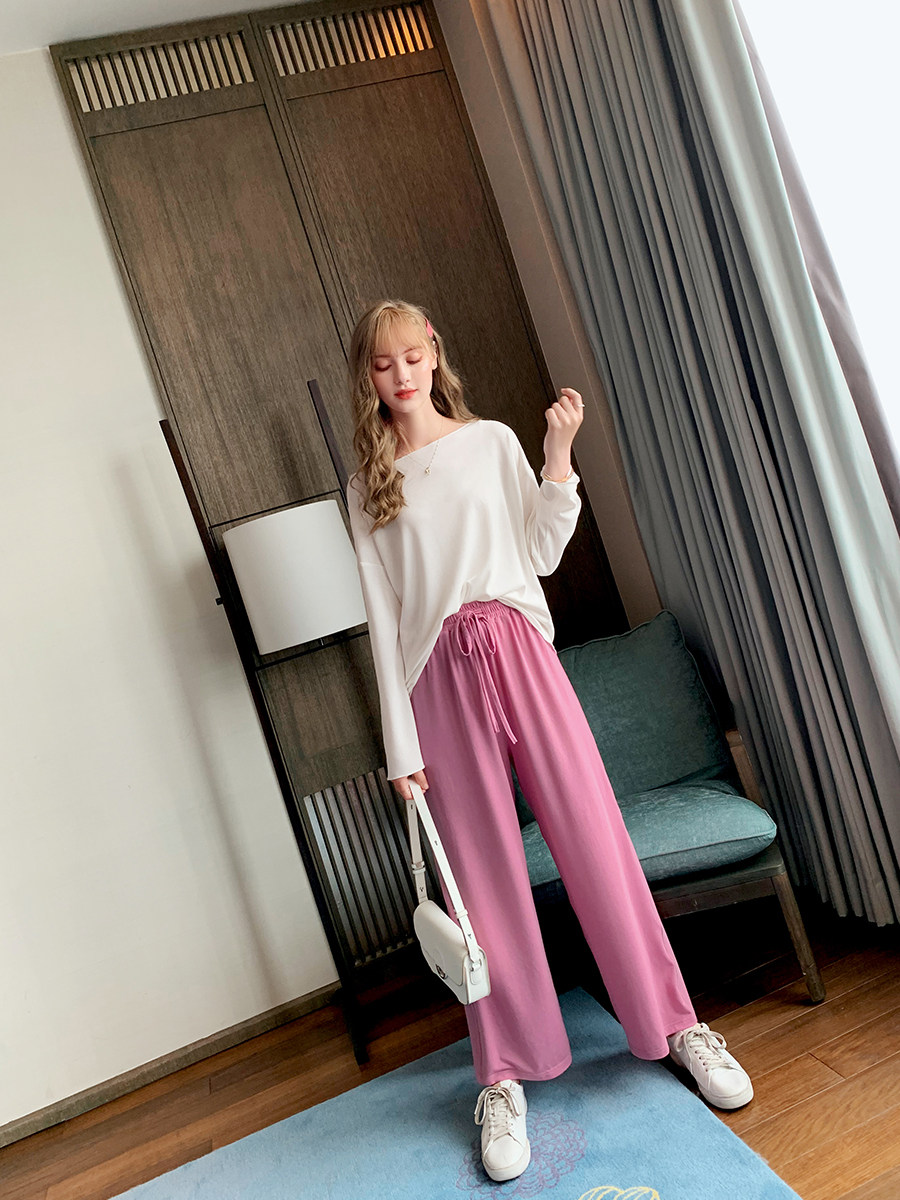 前幅的字母图案,打破单调彰显活力。下摆的打结设计,个性十足吸睛惹眼。简洁的阔腿裤型,包容身材显腿修长。