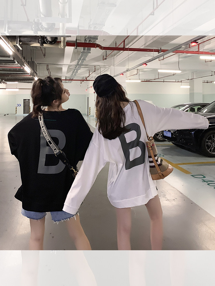 嘻哈少女要不要试一下,很酷的哦!这款长袖衫很简单,外表平淡无奇,但穿起来很潮,衣服圆领设计,很常规的经典领型,穿起来减龄显活力。胸口、后背有字母装饰,时尚潮不张扬,简单不单调呢!到大腿的长度,很适合现代年轻人穿,下半身失踪潮流在线。宽松版型,随意自然,是年轻人随性潮流态度哦!