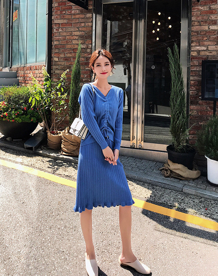 如果是针织的半身裙,上衣随便搭配各种样式的毛衣就可以了呢。