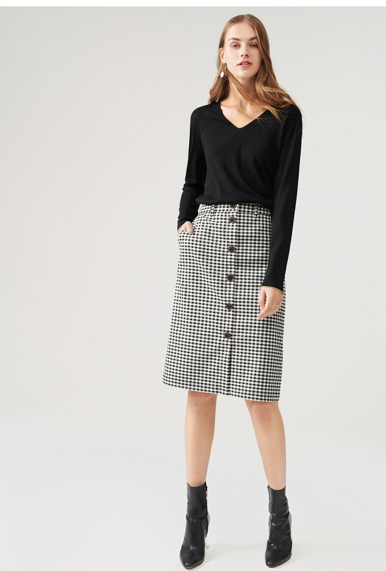 这种黄色也太温柔了吧,女孩子穿在身上真的会衬托得整个人超级元气满满,V领也是显瘦的一把好手,露出精致的锁骨,戴上项链美翻天。