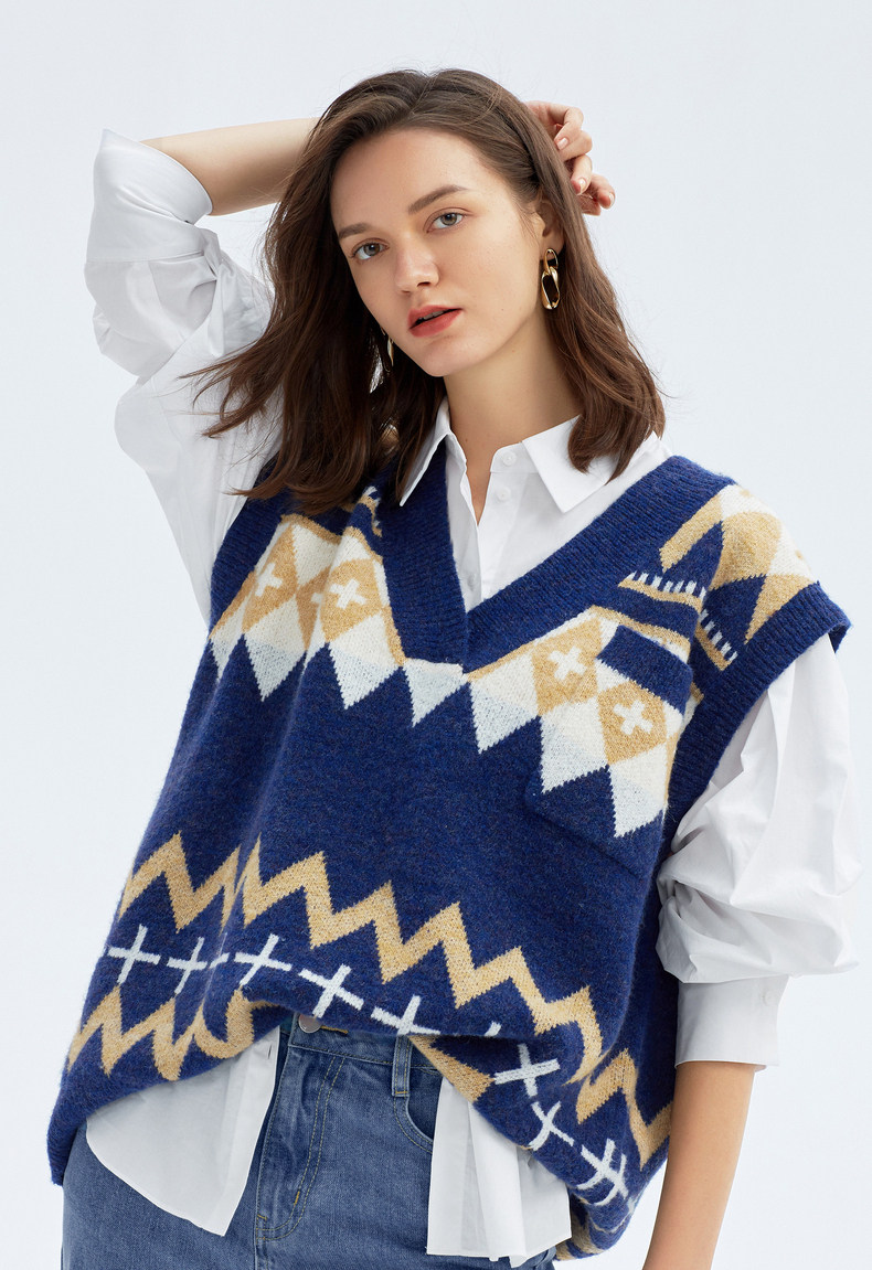 这件针织背心满满的都是学院风,颜色也是今年风很大的牛油果色,简直讨人喜欢极了,搭配白色的衬衫一起穿干净又浪漫,是清纯挂小姐姐最喜欢的款~
