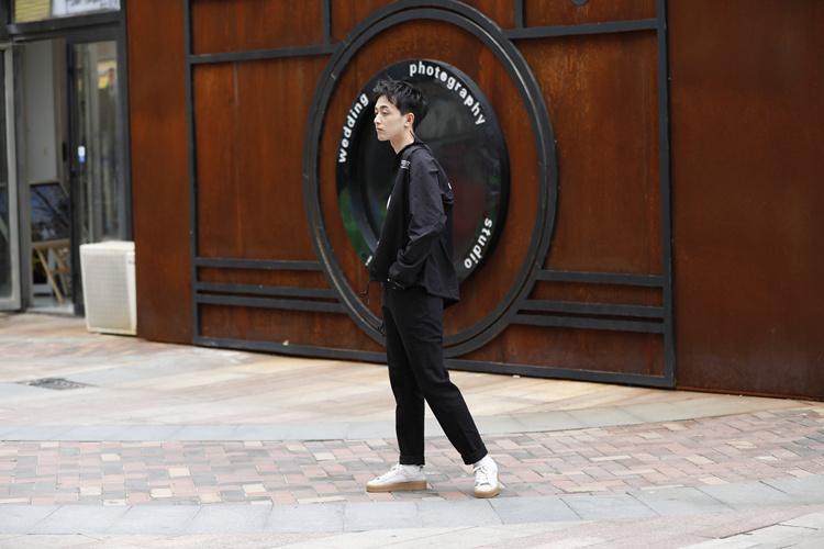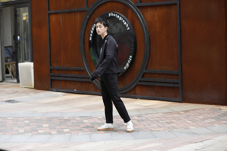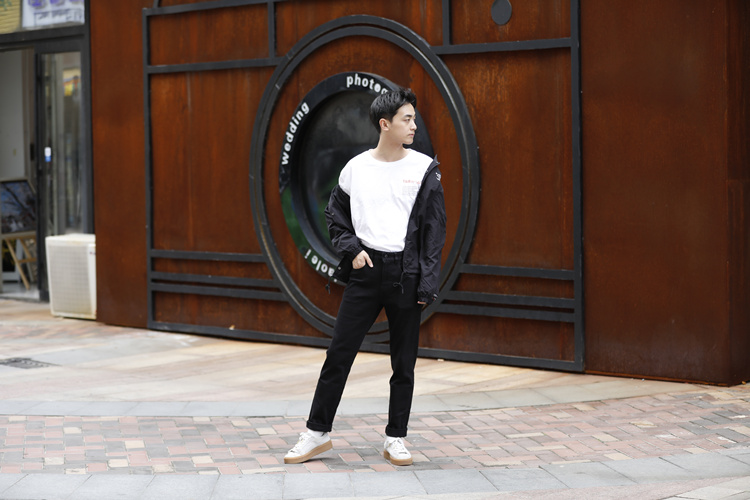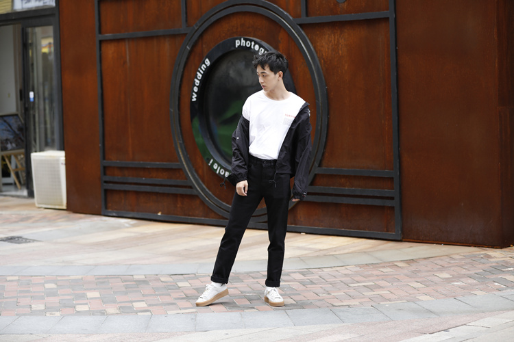 整体衣服的版型是微宽松的,所以不是很挑身材,微胖男生也可以轻松驾驭,穿在身上没有什么紧绷感。而且衣服是比较轻薄透气的,这时候在北方早晚穿是OK的,不会闷热,就很恰到好处。