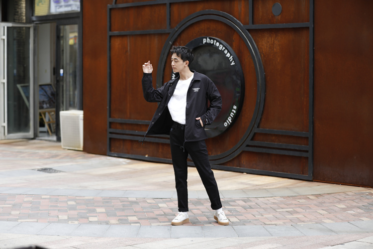 就是马克华菲家的这款教练夹克,一共有两个颜色可选,黑色与红色,鉴于黑色百搭和耐脏的份上,我入手了黑色,看起来是不是很简约?