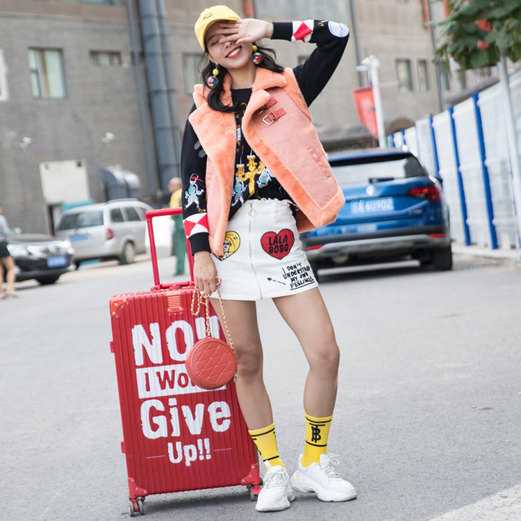 搭配一条短裙儿。再加上马甲外套的短款设计,显得我们的腿又细又长。