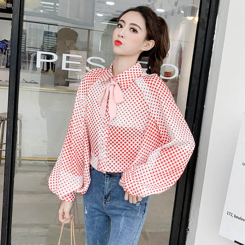 这款波点小衫非常有女人味,性感的V领设计,露出白皙的锁骨,非常性感!翩蝠袖的设计,更有女人味,还能遮住肉手臂哦,让你秋日美轮美奂哦。