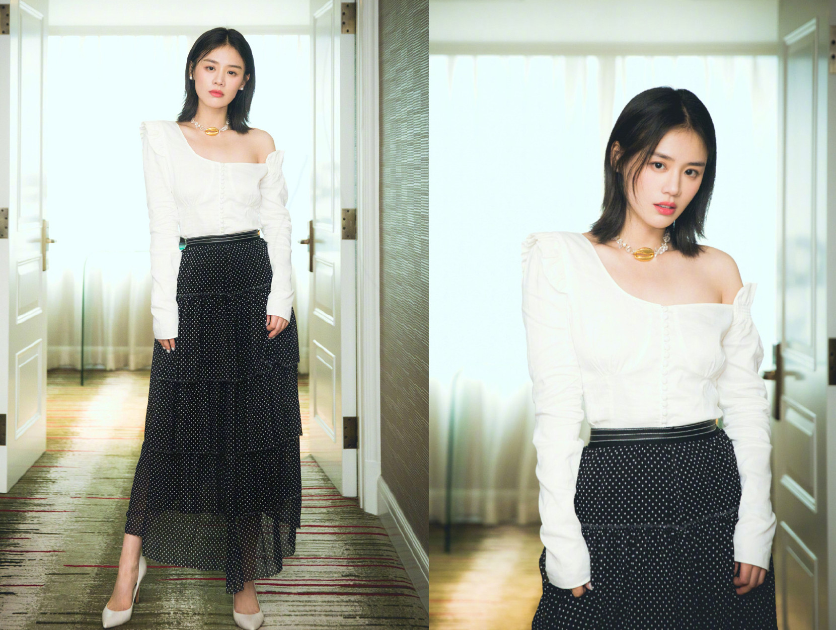 另外,思纯小姐姐虽然骨架大,但有锁骨啊!通过露肩既可以突显性感的锁骨,又可以将肩部的臃肿感转移,简直小心机十足。