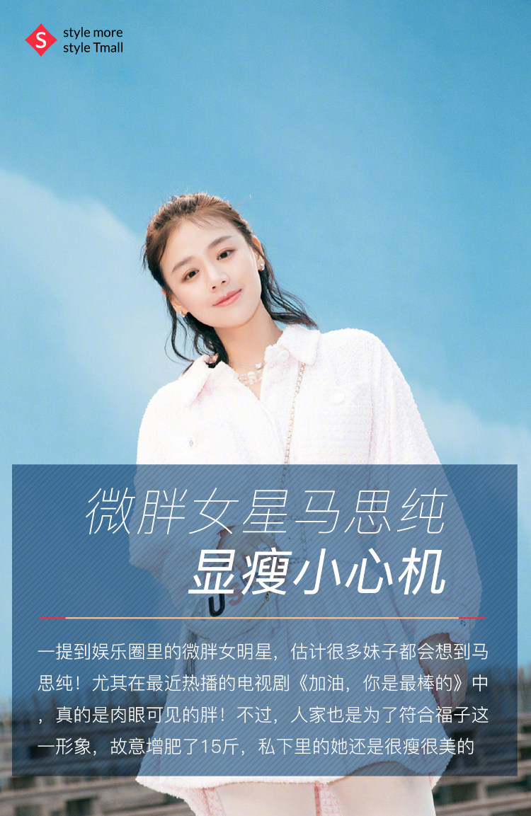 但不得不承认,马思纯确实属于那种骨架大有点微胖的女生。不过,好在人家会穿,借助一些穿搭小心机完美地遮盖自己肉肉的身材~