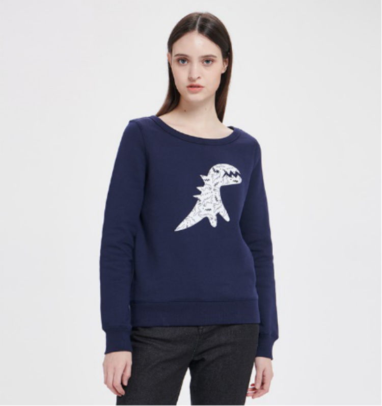 SPORT b.的这件卫衣,以高级的灰色为主要色调,柔化女生的气质。胸前用高温胶印的方式加入恐龙元素,作为卫衣的点缀。有趣的是,恐龙上,还有许多袖珍的恐龙轮廓勾勒,让这件卫衣多了几分别致有趣。