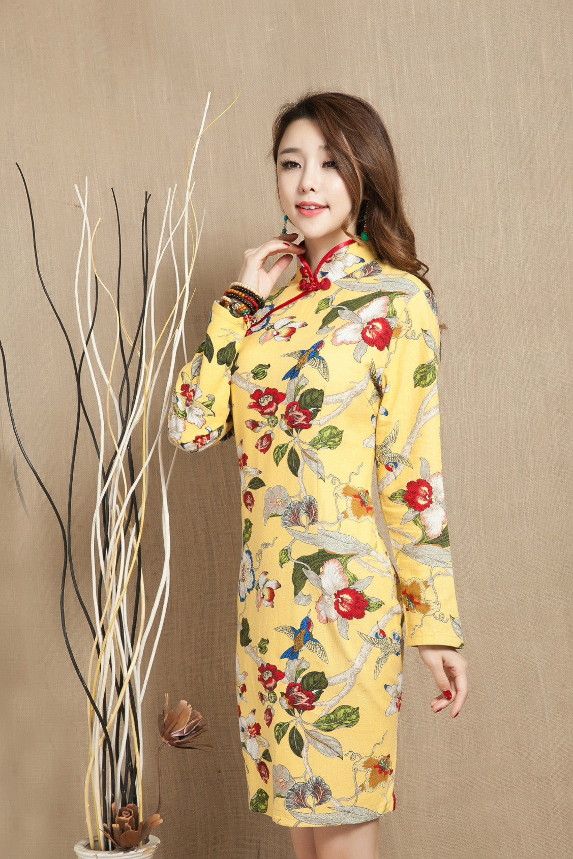 传统中式小立领设计将旗袍的典雅气质完美演绎。原创个性印花面料,色泽鲜明印花精致。
