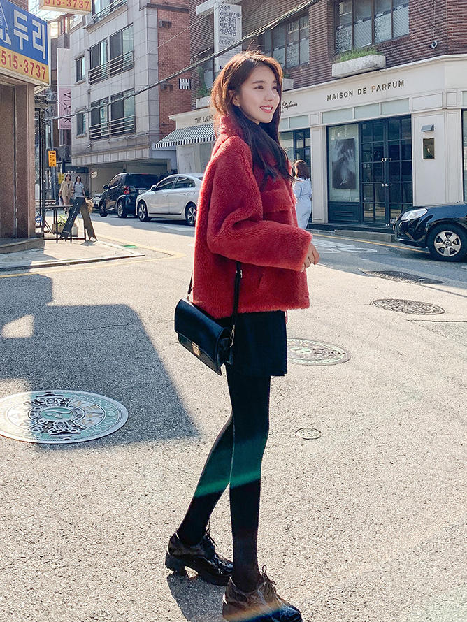 纯纯的绵羊毛剪裁,岂不是穿上就暖到飞起?毛质浓密但却丝毫不显臃肿,宽松的H版型也不挑人,上身就是那种hin乖巧可爱的样子。