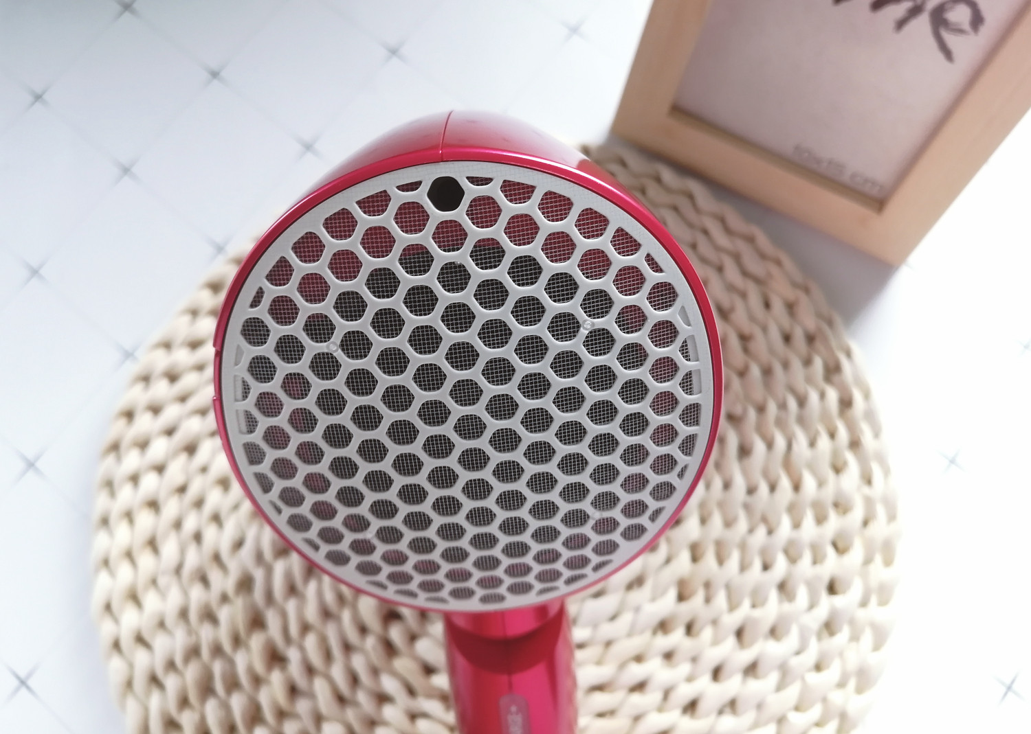 首先就是色彩饱和度较高的红色,以及拥有细腻光泽感外观的颜值率先拿下一分!与其他的吹风机相比,更有一种奢华美的感觉。手柄可折叠,手柄处又有防夹伤手的设计,再加上蜂窝状进风口防止头发卷入等各处贴心的小细节再次拿下一分!