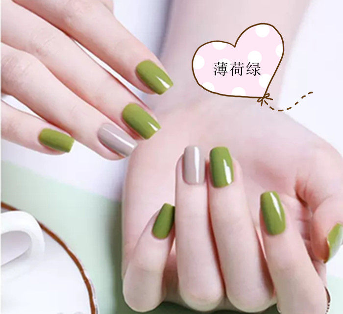 其中指甲油MG21茉莉裙对应着2020年春夏流行色的薄荷绿,NP063薄荷果对应着清水蓝,NP059对应着古金黄。