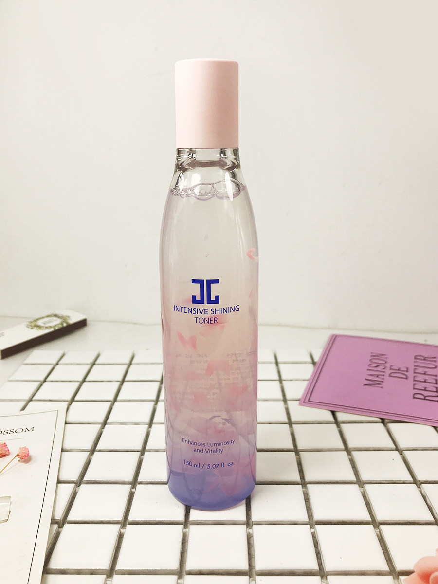 JAYJUN密集焕亮水乳套装,淡淡的樱花香味,闻着很舒心,很好闻,涂抹在脸上很快就被吸收,使用后的肌肤很水润很光滑,一点也不会有粘腻的感觉,这款水乳美白补水的效果超级赞。