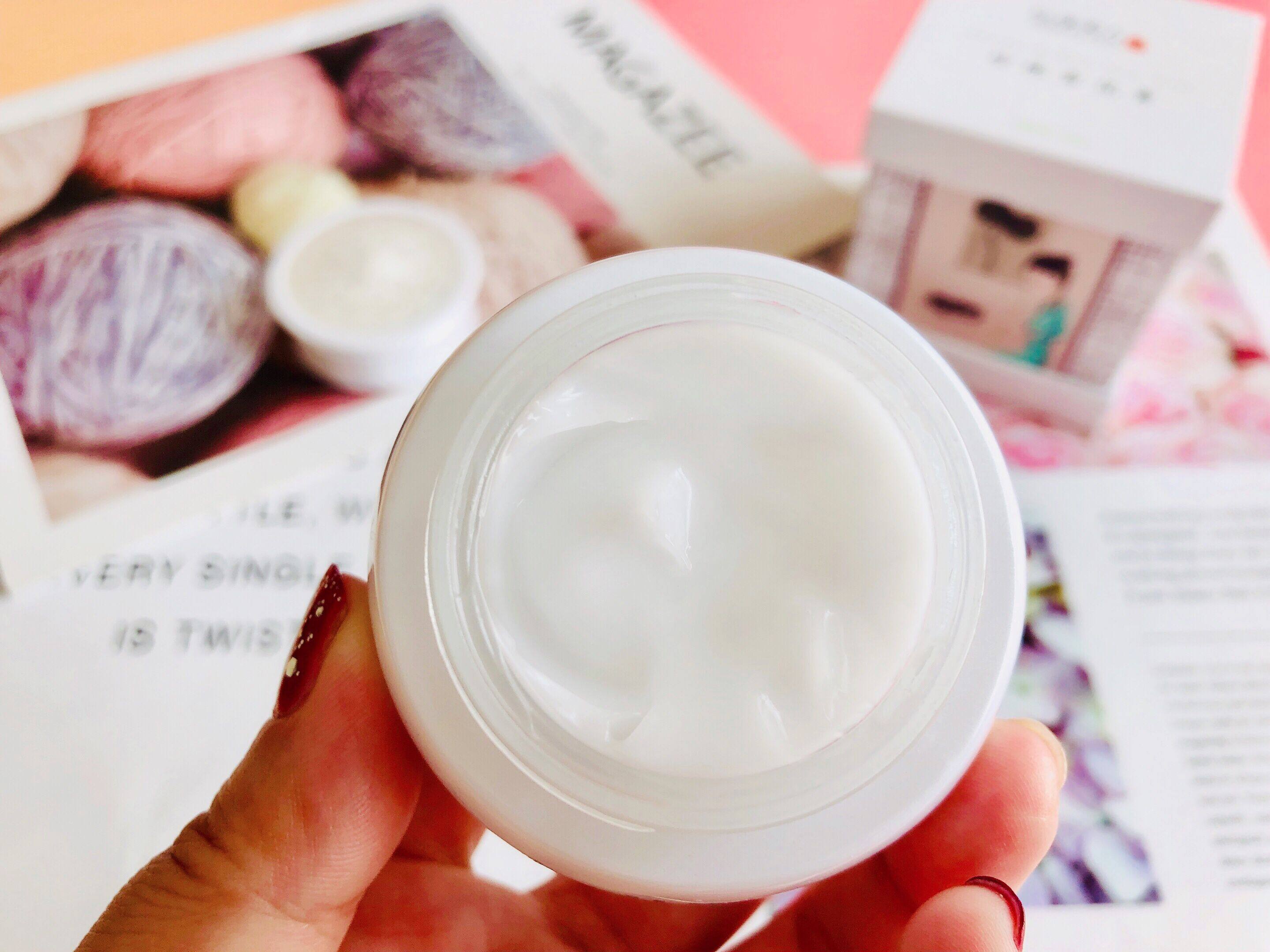一打开就能闻到淡淡的清新海洋樱花香,它是薄如雪花般的清透乳霜质地,偏轻盈水润,很容易推开,抹匀瞬间乳霜变成水珠状,就像雪花掉落肌肤化成水一样,冰冰凉凉的,再按摩一会就能完全吸收掉,像是把水分推进肌肤一样,让肌肤得到深层的滋润,很清爽不油腻。