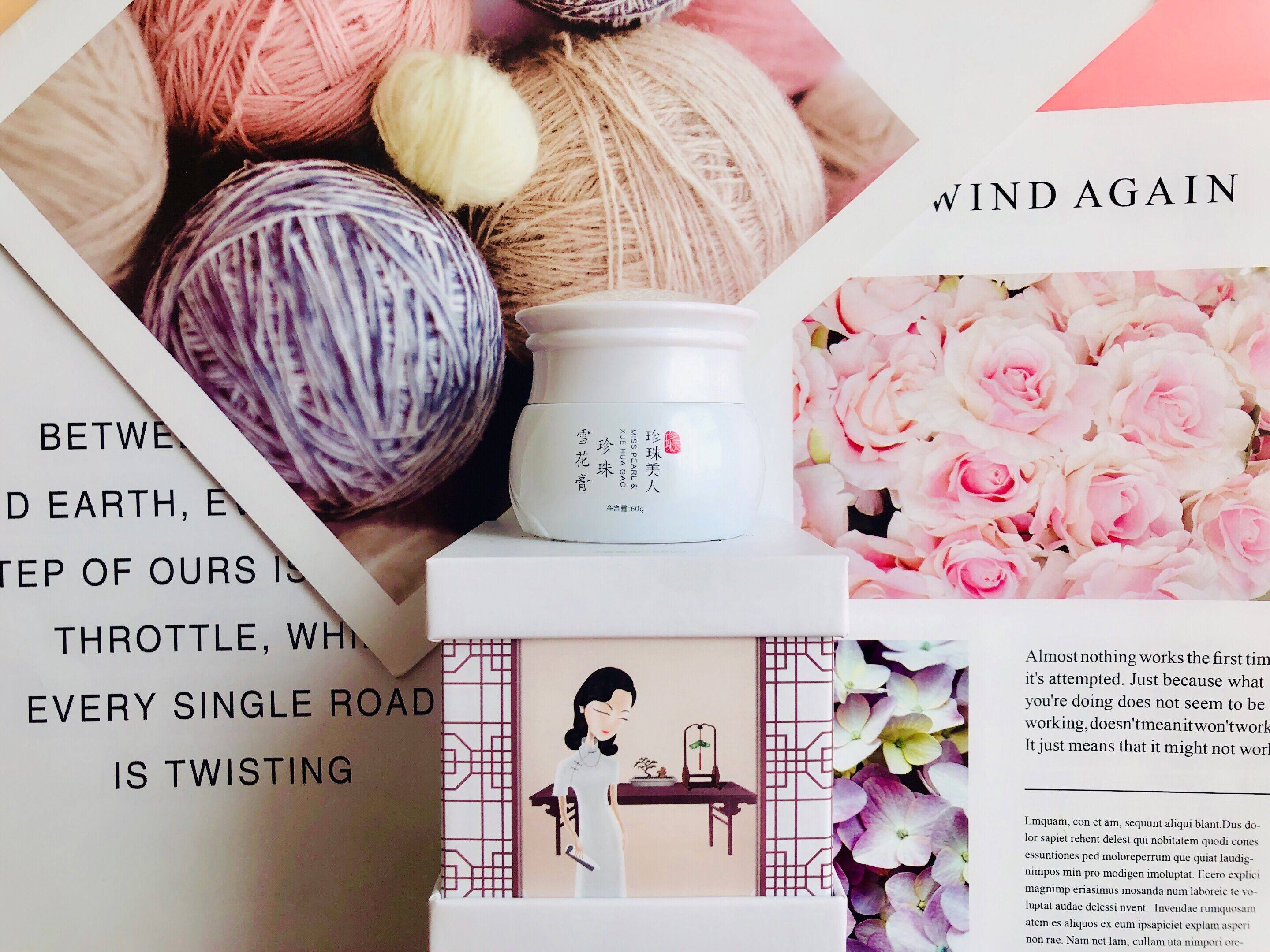 我第一眼就被它的颜值圈粉了,古色古香的外包装盒子,打开是怀旧感十足的白瓷瓶,从内到外散发着浓浓的东方之美。雪花膏这个词语我还是从妈妈那里了解的,它因为涂在皮肤上质感就像雪花掉落皮肤融化成水而得名。